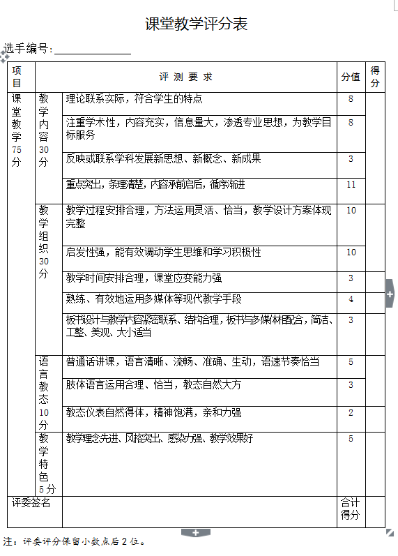 公司复赛由教学设计和课堂二部分组成,分数分别为25分、75分。各支部(系)可参照公司复赛竞赛内容和流程举行系内初赛。