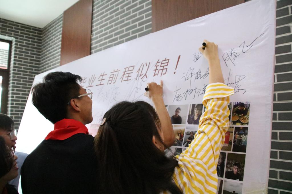 临近尾声,毕业班辅导员王梦老师总结了这四年来相约陪伴的日子,并为毕业生送上了祝福,相约再见。在《送别》的歌声中,现场的相机将在场每位的笑颜定格在了这瞬间。2019届毕业生即将各奔东西,但总有些留在了记忆深处永不退色。