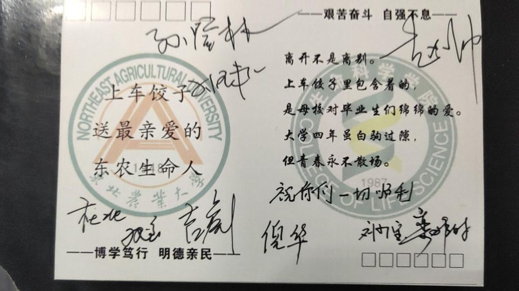 四年时光,如白驹过隙,在2019届毕业生准备踏上新征途的时候,再回看校园,这个让大家收获了沉甸甸的精神财富的地方,到处都充斥着美好的回忆,离别感伤之际,却也让毕业生们与这个公司更加亲密。今日的离别是为了成就明天更好的自己,而“上车饺子,下车面”,就是东农对即将远行的学子最殷切的祝福:“祝愿莘莘学子前程似锦,鹏程万里。”