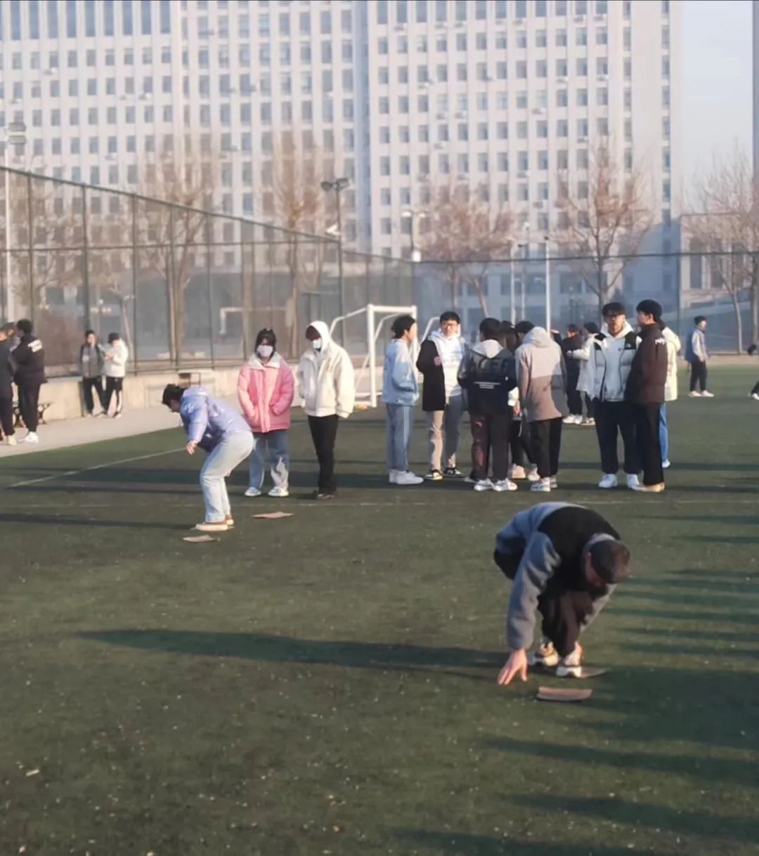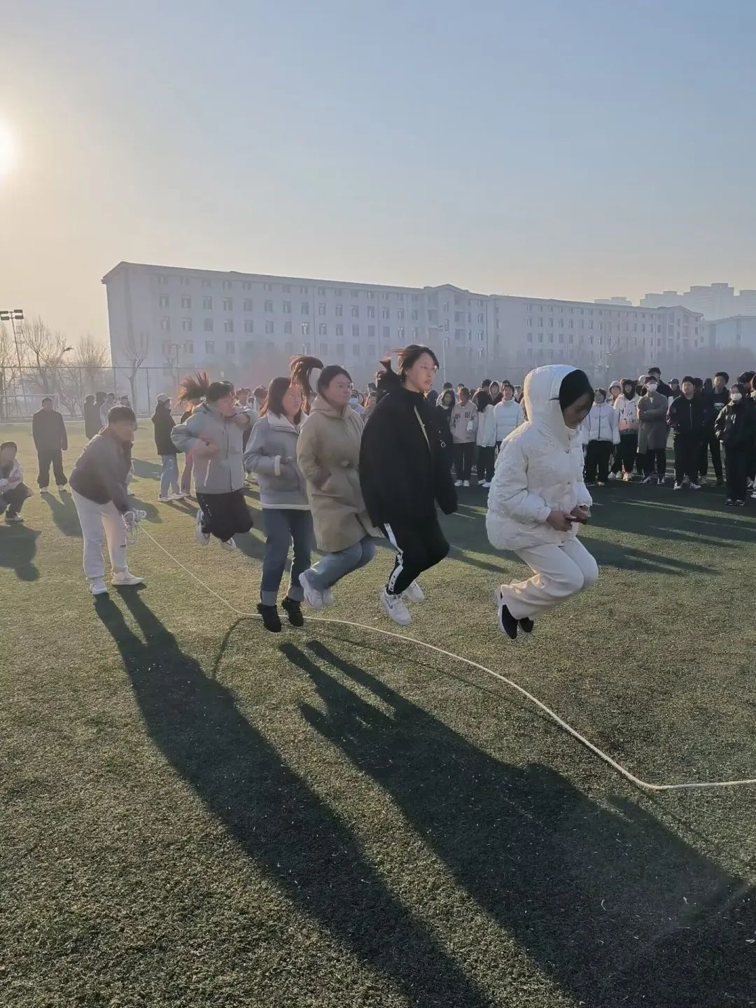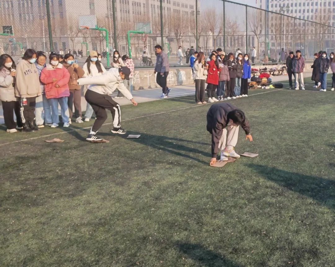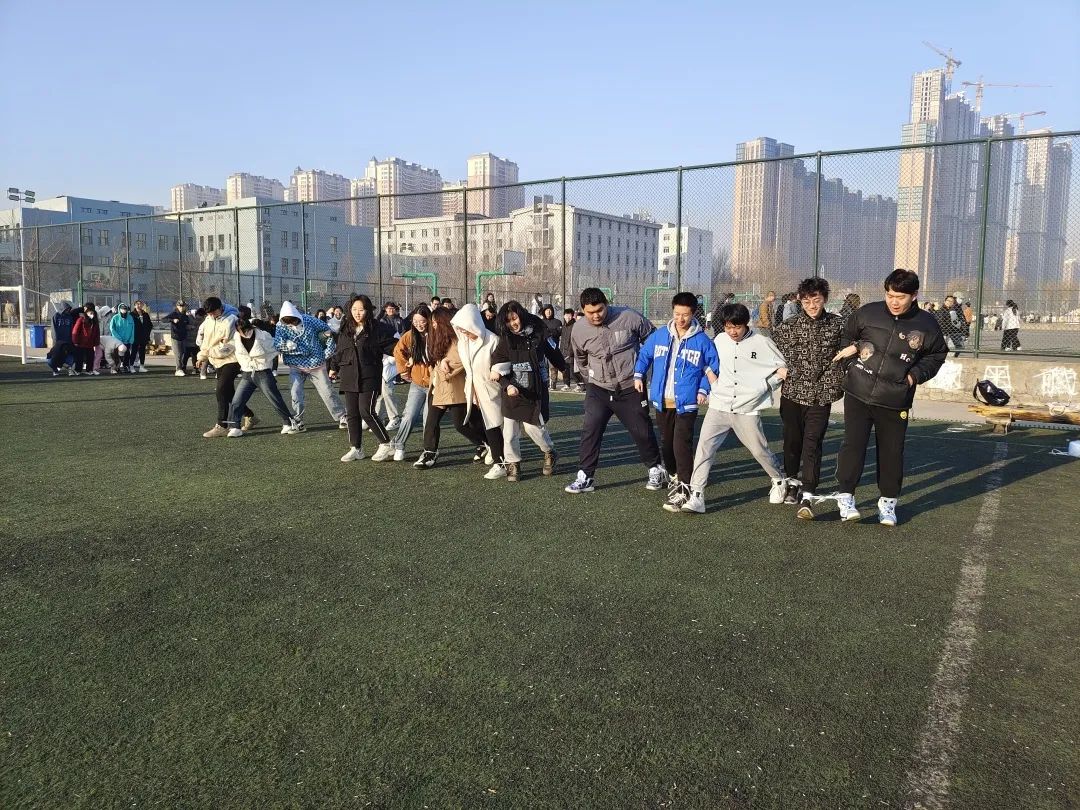 在活动的第一天进行了五人六足和趣味跳大绳,每个参赛班级都热情满满,奔着终点出发,场面十分激烈。