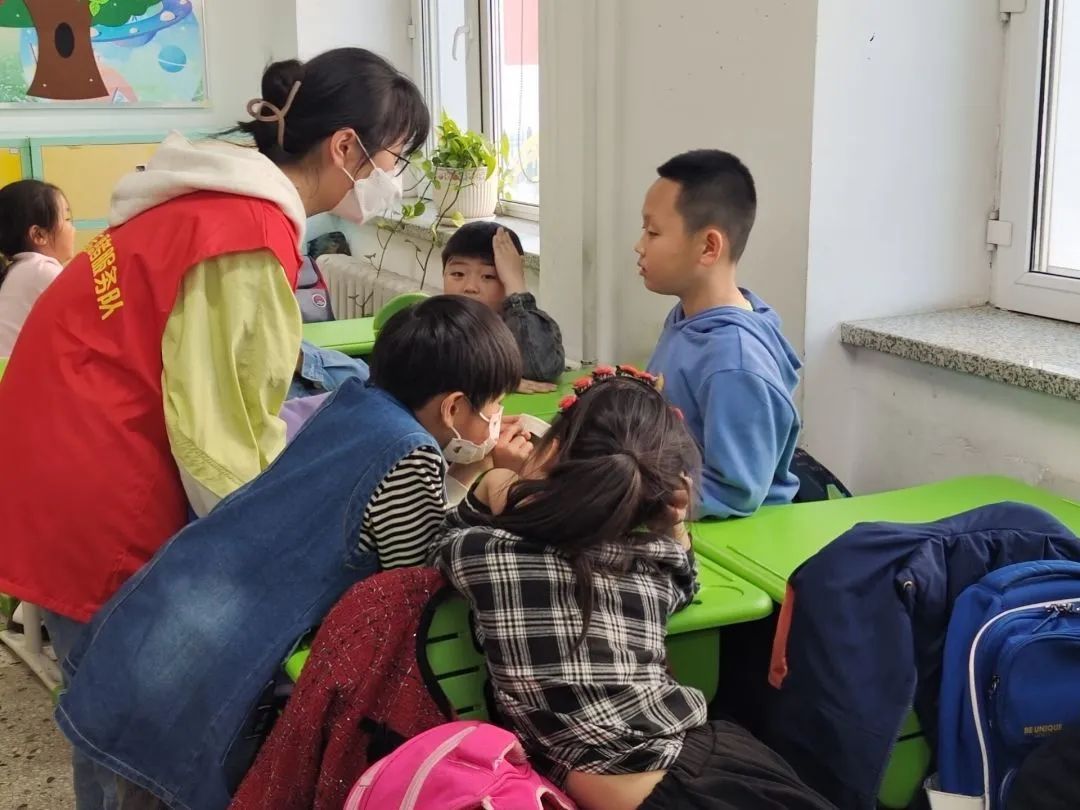支教过程中,一部分志愿者来到了二年级一班,通过情景演绎的形式为同学们科普了新冠病毒二次感染的原理及防护方法,形象而具有趣味性。此后又带领同学们参与了绘画接力、标本辨识、魔术及歌曲欣赏等活动,大家积极展示、踊跃发言,充分发挥自己的想象力和创造力。在最后的答疑解惑阶段,同学们异想天开,所问所思从宇宙至蜉蝣,从有机到无机,从过去到未来;天马行空恣意飞扬;如果诚如儒贝尔所说“想象是灵魂的眼睛”,那么这些孩子一定拥有一双澄澈的双眼。整个课堂课堂期间充满欢笑与快乐,这既是同学们收获知识的快乐,也是志愿者们实现自我价值的愉悦,是真正意义上的教学相长也。