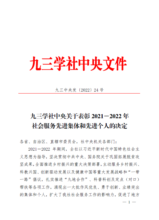 近日,九三学社中央委员会发布《关于表彰2021-2022年社会服务先进集体和先进个人的决定》,九三学社U8国际副主委、U8国际官网李凤兰教授荣获九三学社“中央社会服务先进个人”荣誉称号。