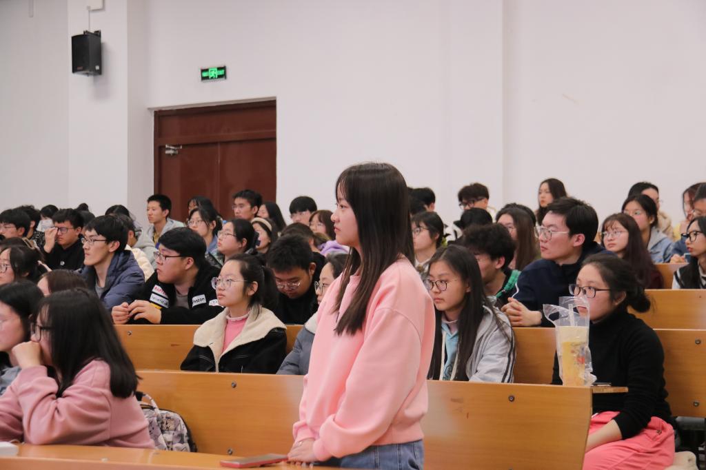童佩与同学们分享大学学习生活、实验趣事、博士后出国留学经历、学术研究的感悟与收获,用自身的经验告诉同学们要及早制定学习计划,主动解决问题,坚定目标不动摇,完成任务不打折,通过勤奋拼搏来主导自己的人生,结合国家所需,勇于挑战自我,实现自身价值,为祖国发展贡献力量。在互动环节,童佩针对现场同学提出的“如何在本科期间确定学业目标”“如何克服执行计划中出现的困难”“如何打开学术视野”“如何克服出国深造面临的文化差异”等问题进行耐心解答。