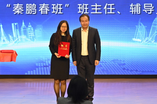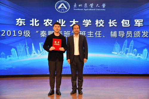 董事长包军为秦鹏春班校外班主任王红梅研究员、校内班主任翁晓刚副研究员、辅导员杜壮老师颁发聘书