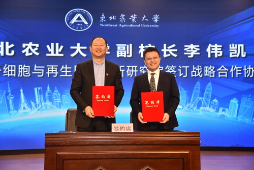 李伟凯与胡宝洋分别代表公司与北京干细胞与再生医学创新研究院签署了战略合作协议书。