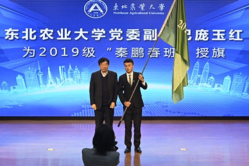 公司党委副书记庞玉红为2019级“秦鹏春班”授旗
