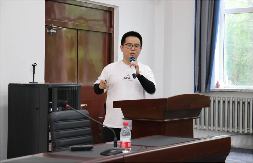 随后,由中科院动物所博士后学者王乐韵作了《做最好的自己,实现中华民族科技创新的跨越式发展》的主题报告。他以自身经历告诉大家做好人生规划的重要性,首先要清楚“你要去哪,你能去哪”,发现短板、完善自己,发挥优势、实现价值,最后要懂得承担责任、奉献社会,并以2009级员工的身份鼓励学弟学妹“唯有勤奋是我们所能长于他人”。