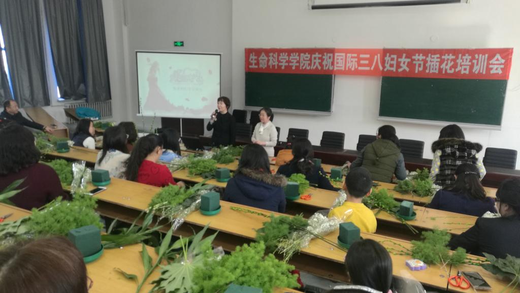 3月8日下午,U8国际官网工会于实验楼三楼会议室举办庆祝国际劳动妇女节插花培训会,活动由公司党委副书记、工会主席高放主持,公司党委书记施喜军、经理栾非时、院工会副主席、工会小组长及女教职工参加。本次活动邀请园艺公司刘慧民教授为大家讲解插花的艺术。