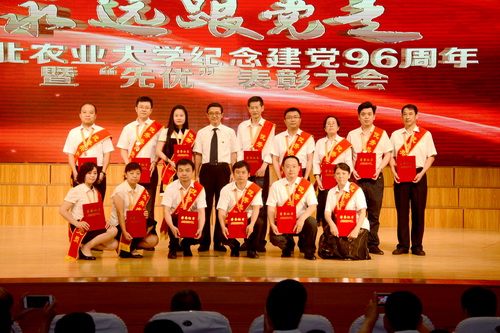 公司生物技术员工党支部获先进基层党组织荣誉称号,刘忠华教授、孙珠红老师获优秀共产党员标兵荣誉称号,高放副书记、王馨悦同学获优秀共产党员荣誉称号。