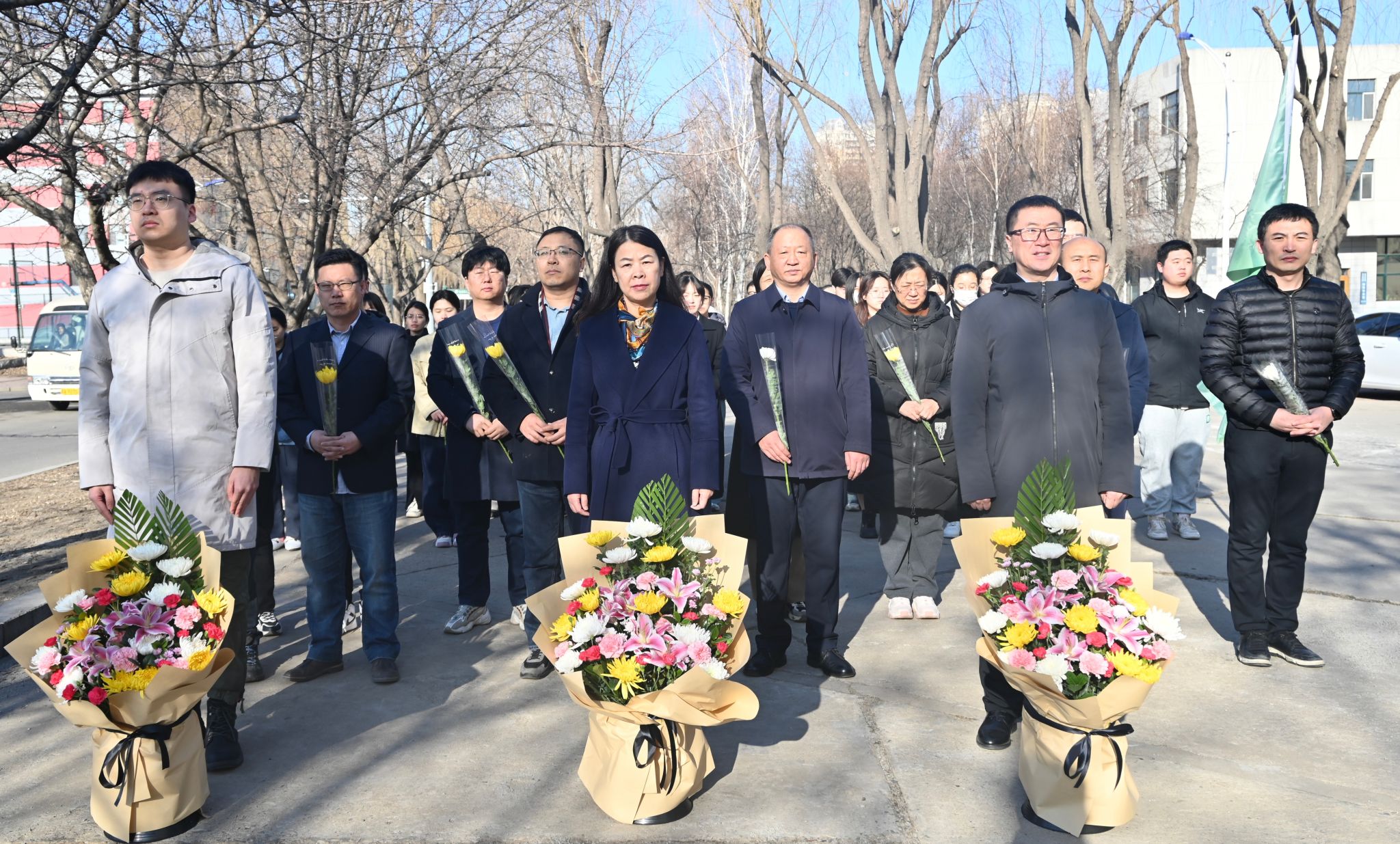 全体师生向秦鹏春先生铜像鞠躬并默哀致敬,随后依次上前敬献鲜花、瞻仰铜像,深切缅怀秦鹏春先生在教研、育人和团队建设等方面作出的卓越贡献。