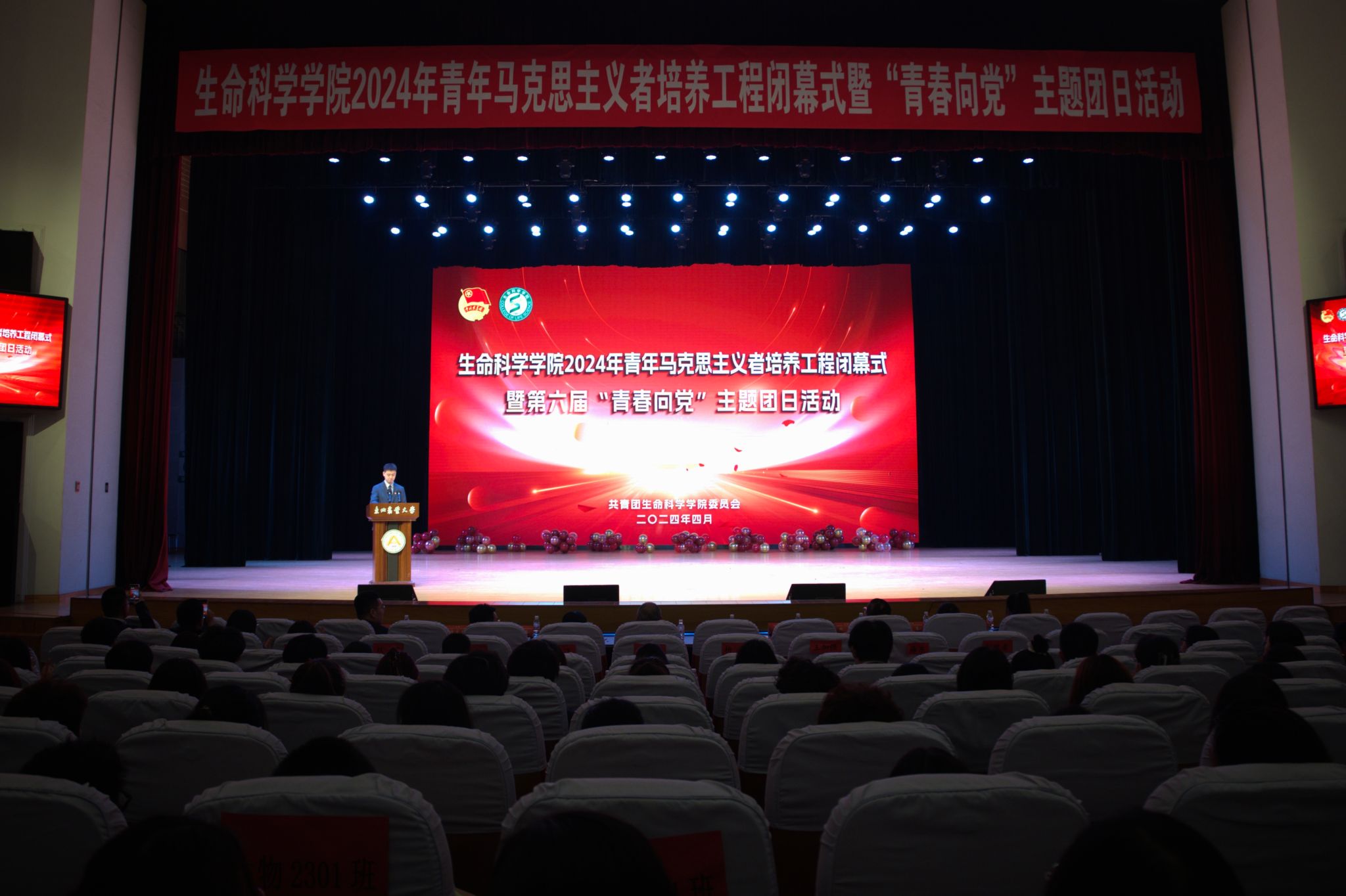 赓续百年精神风貌,书写新时代青春华章。为全面贯彻落实习近平总书记关于青年工作的重要思想,增强公司青年学子的思想政治素养和马克思主义情怀,按照共青团中央《关于深入实施青年马克思主义者培养工程的意见》有关要求,结合校团委工作部署,4月24日,U8国际官网2024年青年马克思主义者培养工程闭幕式暨第六届“青春向党”主题团日活动在公司音乐厅举行。校团委书记李卡、公司党委书记施喜军、校团委副书记焦文静、公司党委副书记孙珠红、公司2022级班主任和全体辅导员出席活动,青马工程全体学员与2022级、2023级全体本科生共计800余人参加活动,会议由团委指导教师韩宗伯主持。