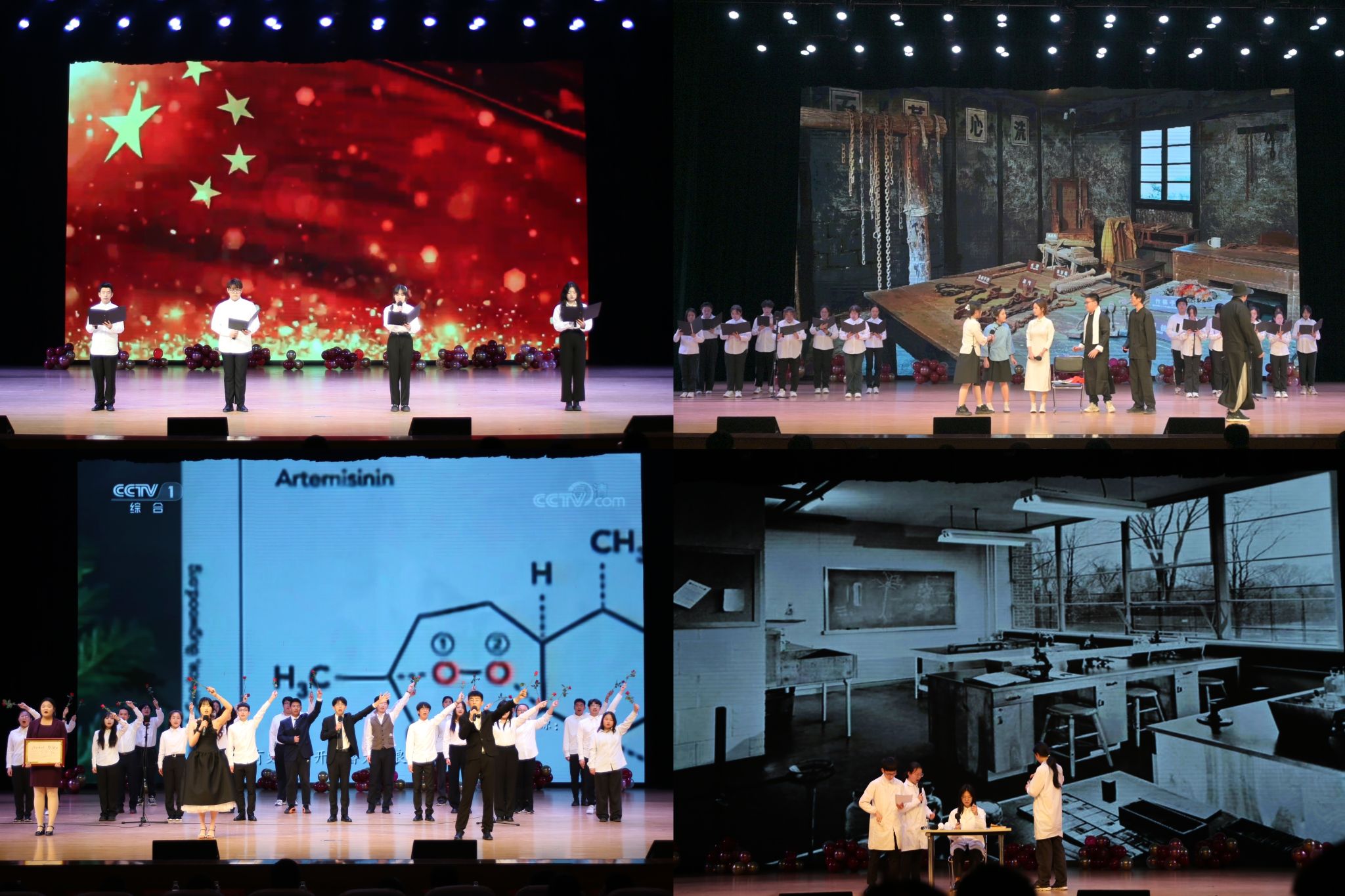 舞台剧《西南联大的同学们》、《穿梭》、《外交风云1919》、《满江红》描绘了一批热血澎湃的青年擎起真理的火炬,历经艰险开辟经天纬地事业的故事,带领大家回顾那场拯救民族危亡、捍卫民族尊严、凝聚民族力量的伟大运动。