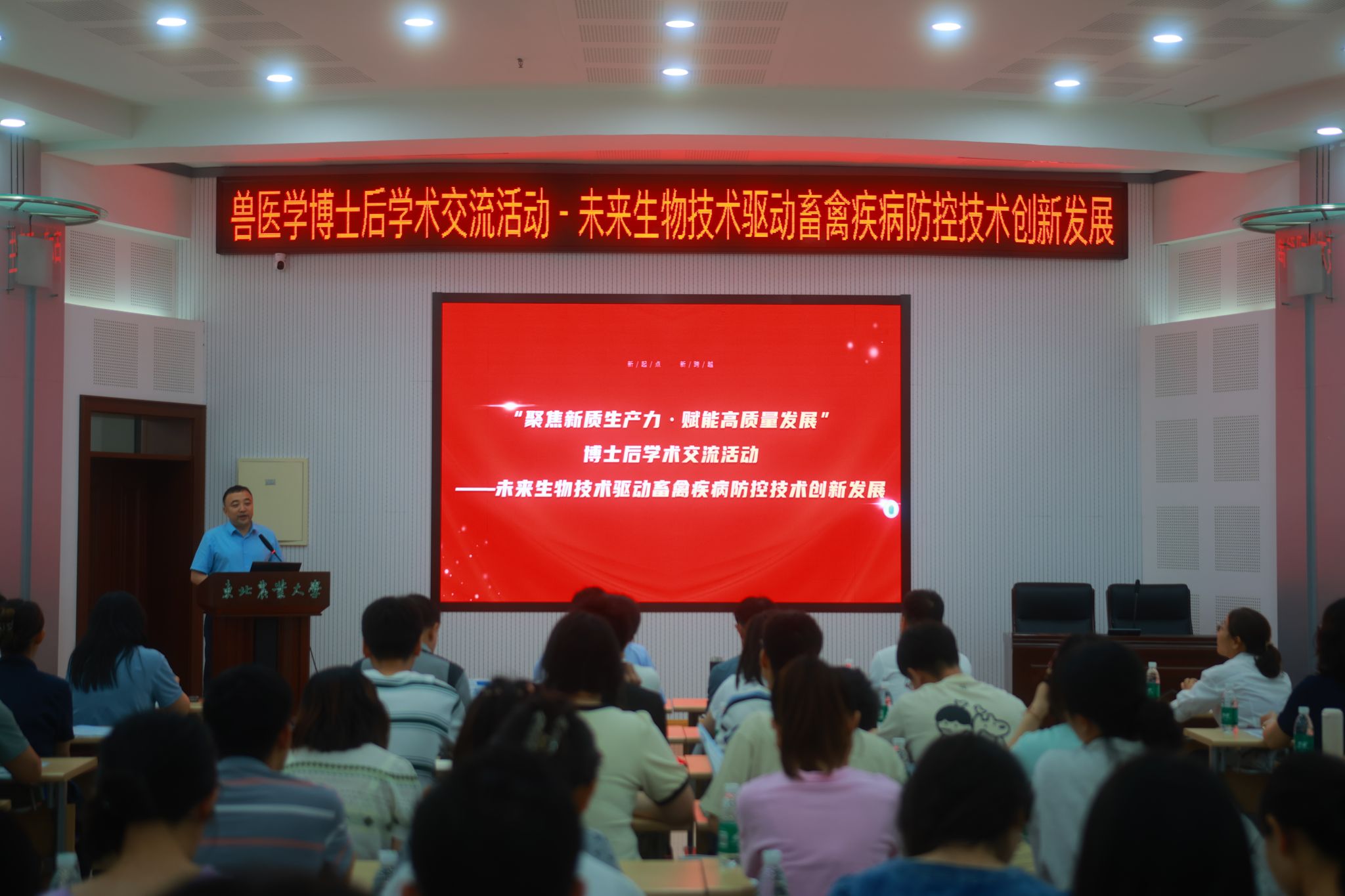 兽医学博士后科研流动站分论坛以“未来生物技术驱动畜禽疾病防控技术创新发展”为主题在图书馆227会议室举行。报告会由动物医学公司经理李金龙主持,吉林大学刘国文教授、贺文琦教授,哈尔滨国生生物科技股份有限公司董事长王云峰及动物医学公司博士后张志云、李雪楠、李亚楠、赵一 、孙哲鹏,博士解伟纯做了专题报告。