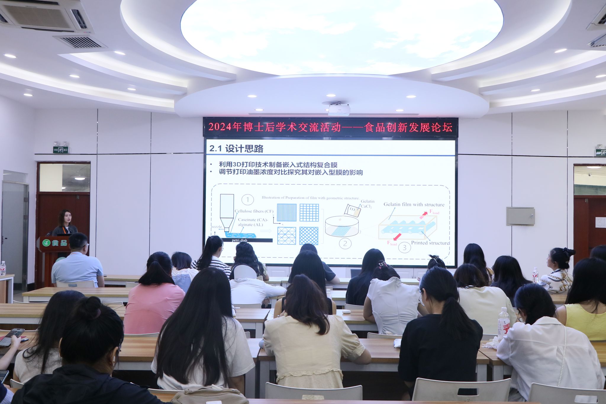 食品科学与工程博士后科研流动站分论坛以“ 食品创新发展”为主题在食品公司315会议室举行,报告会由公司行政负责人李良主持,食品公司李柏良教授、刘璐副教授、王菁副教授、李雪副教授以及全职博士后孙红波、解伟纯博士做了专题报告。