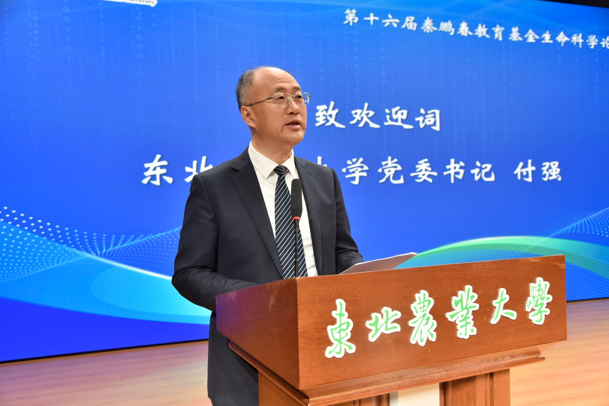 付强代表公司致欢迎辞,他对莅临论坛的各位嘉宾和员工表示热烈欢迎,对荣获秦鹏春教育基金科研创新奖学金和被遴选为秦鹏春班的员工表示衷心祝贺,对一直以来关心和支持东农发展的各界人士致以崇高敬意。他指出,秦鹏春先生作为我国著名动物组织胚胎学家、农业教育家,毕生致力于科学探索,培养了一大批活跃在国内外生命科学研究领域前沿的优秀创新人才,为公司赢得了培养世界胚胎工程精英摇篮的美誉,为公司生物学科发展和世界胚胎学研究作出了突出贡献。在这种精神力量的激励和影响下,秦鹏春教育基金生命科学论坛已成为一年一度生命科学领域的学术盛宴,基金设立的科研创新奖学金、资助组建的秦鹏春班已经储备培养了一批兼具科研素养与开拓精神的新锐力量,赓续了先生的教育理念、传承了先生的崇高精神,为公司奋力实现世界一流大学“东农梦”奠定了坚实基础。付强表示,希望广大师生珍惜学习交流机会,了解前沿科学知识、开阔学术视野,进一步传承和弘扬秦鹏春先生的崇高精神,恪守报国初心,锚定第四次党代会擘画的发展蓝图,刻苦学习钻研,不断成长进步,在推进强国建设、民族复兴伟业中挺膺担当、不懈奋斗。
