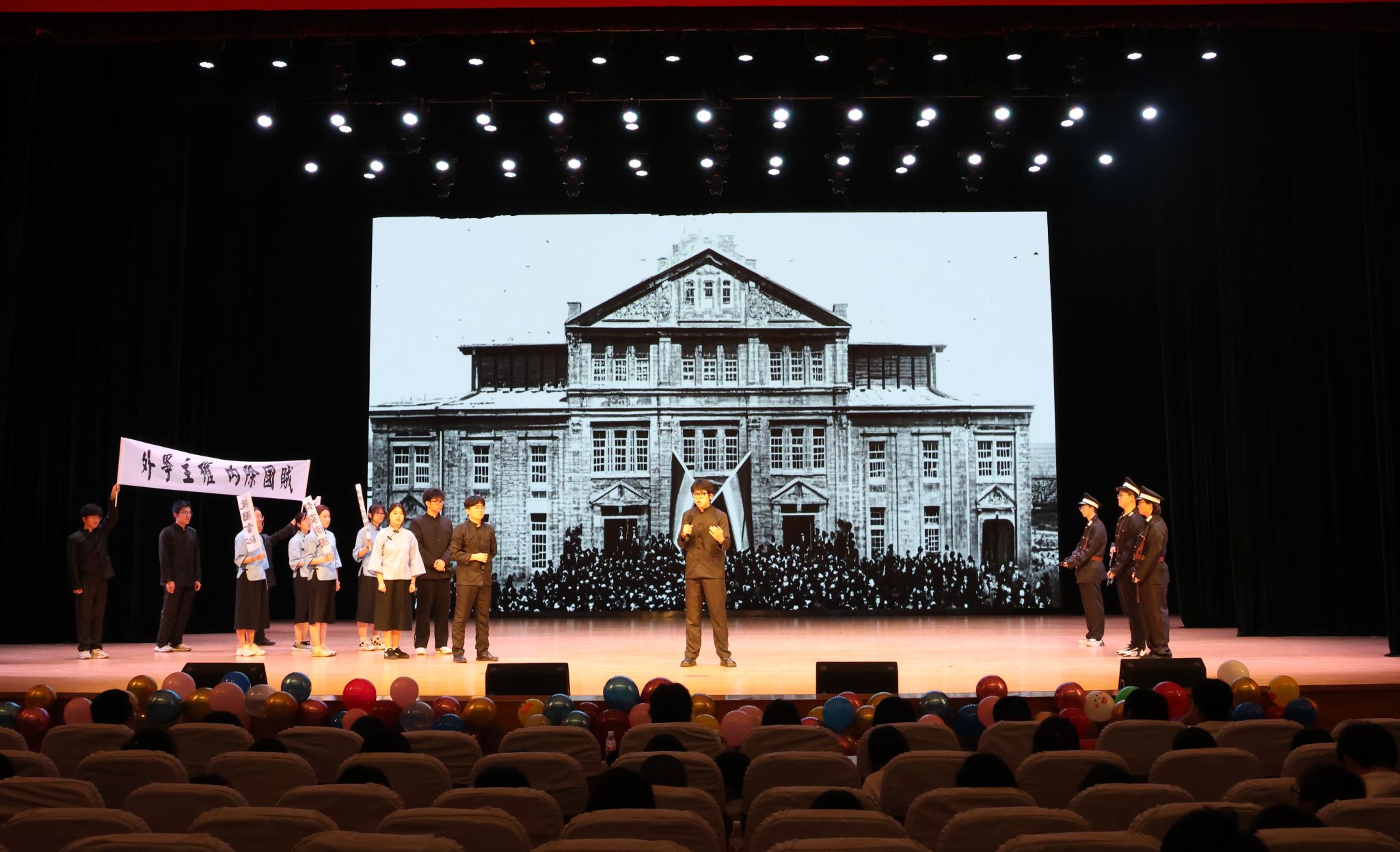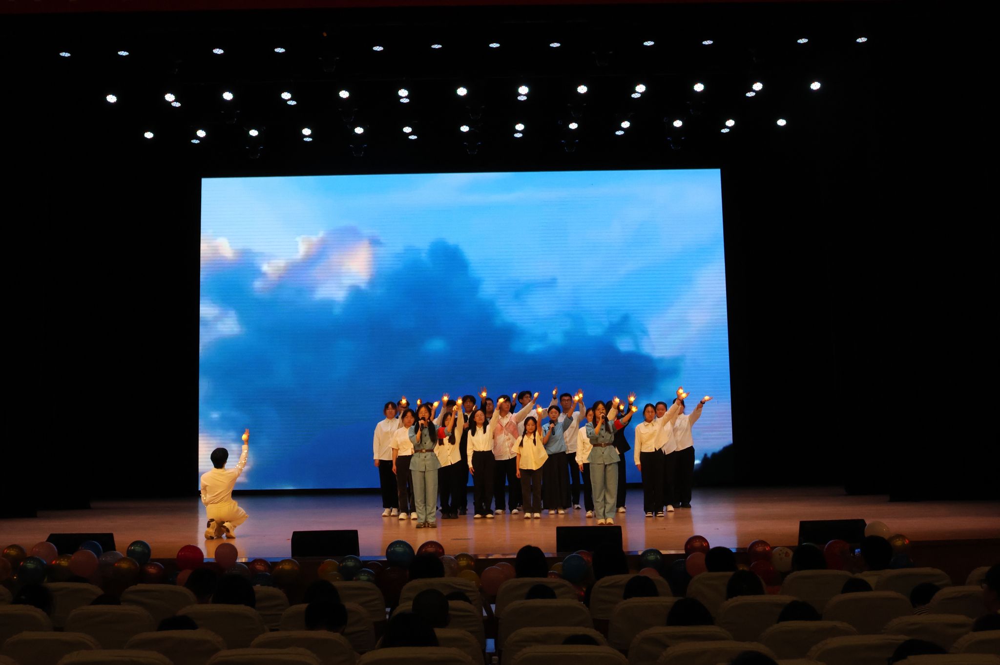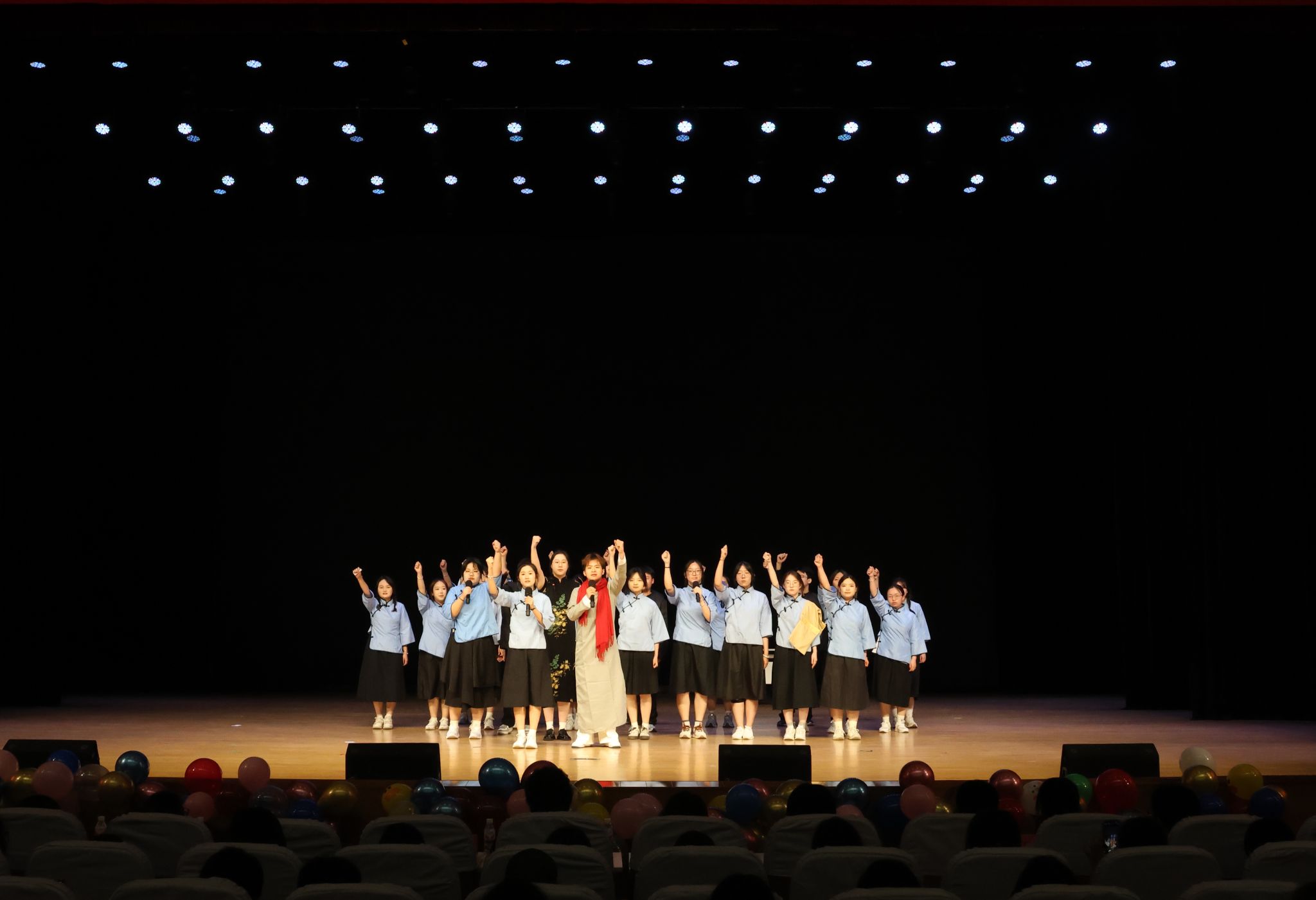 2023级11个本科团支部以班级为单位,通过朗诵、舞台剧、情景剧等不同形式进行艺术展演,情景剧《破晓》《烽火弦歌:西南联大的星辰》《燎原之火》《如愿》《红岩黎明之际》用舞台演绎重塑觉醒年代的信仰之光,展现百年前青年如星火汇聚,照亮中国前行道路,激荡新时代青年心灵。